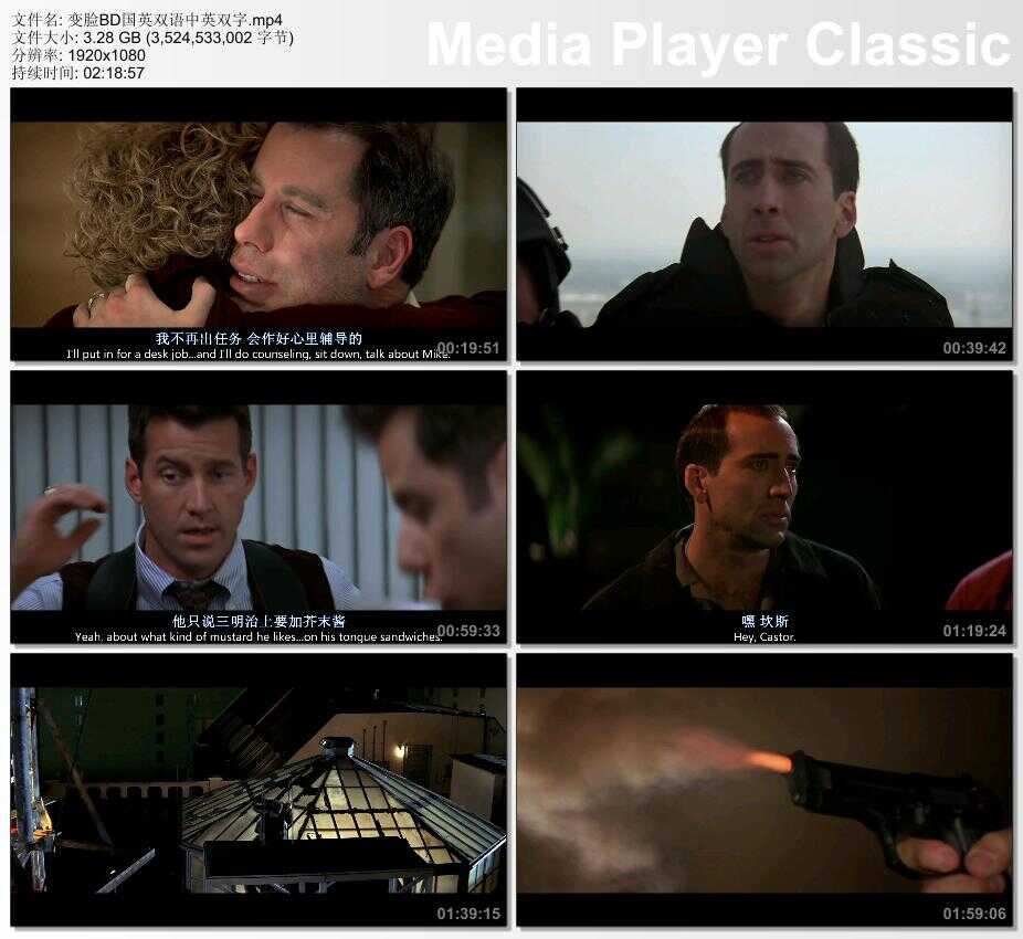 凯斯特(尼古拉斯•凯奇 Nicolas Cage 饰)是一个恐怖分子,他本想杀死探员西恩(约翰•特拉沃塔 John Travolta 饰),却误杀了西恩的儿子,西恩更与凯斯特结下不共戴天之仇。在逮捕凯斯特归案之后,他以为可以划上句号,却得知凯斯特已经把一枚毒气炸弹投放在某个人群密集的角落。 为了查出炸弹地点,西恩决定利用整形手术,将昏迷中的凯斯特的脸换在自己身上,去假扮凯斯特身份套出他弟弟说出真相。这件事属于FBI高度机密,只有寥寥几人知情。 凯斯特醒来,此时他有着西恩的面相。于是他决定将计就计,将知情人杀掉之后,他就变成了西恩……◎获奖情况 第70届奥斯卡金像奖 (1998) 最佳音效剪辑(提名) 佩尔·霍尔伯格 / 马克·P·施特金格尔