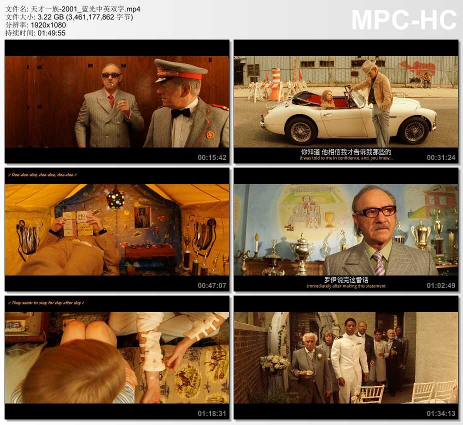 主 演 吉恩·哈克曼 安杰丽卡·休斯顿 本·斯蒂勒 格温妮斯·帕特洛 卢克·威尔逊 欧文·威尔逊 比尔·默瑞 丹尼·格洛弗 西摩·卡塞尔 库玛·帕拉纳