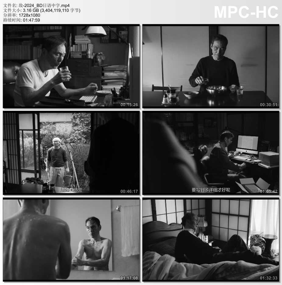 大学教授渡边退休后独居小屋,每日煮饭、操持家务,在日复一日的淡雅日常中,打点自身晚年生活。专注追求学识的极致,偶有红粉知己探访。写作之余也撰写遗嘱,受邀演讲还是坚持自己的价码。如此尊严又惬意自在的状态,却逐渐浮现健康恶化、关系崩解等征兆。心绪混乱的同时,渡边开始不断收到同一则诡谲的信息:逃跑吧,北方的敌人即将来到⋯⋯◎获奖情况 第49届日本电影学院奖(2026) 最佳男主角(提名) 长塚京三 第37届东京国际电影节(2024) 主竞赛单元 最佳影片 吉田大八 主竞赛单元 最佳导演 吉田大八 主竞赛单元 最佳男演员 长塚京三 第18届亚洲电影大奖(2025) 最佳电影(提名) 最佳导演 吉田大八 最佳男主角(提名) 长塚京三 最佳女配角(提名) 泷内公美 最佳摄影(提名) 四宫秀俊 最佳造型设计(提名) 宫本茉莉