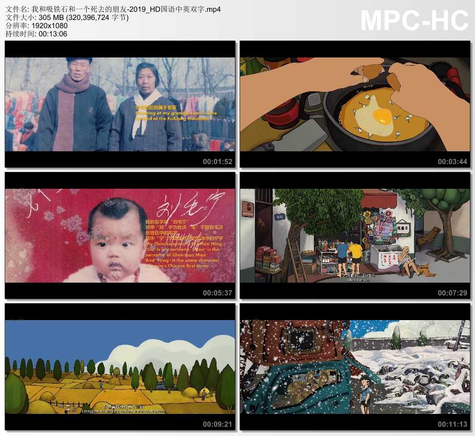 在我的童年时代,我时常因为无所事事把一块吸铁石绑在裤子的后面,整天拉着它出门。吸铁石能吸到公路上的铁钉、螺丝和啤酒盖,这让我很开心。那个时候我有一个很好的朋友,他和我一样无所事事。后来伴随着他的意外去世,我的童年也就结束在了那里。◎获奖情况 第29届安锡国际动画节(2019) 学生动画单元(提名)刘毛宁 第1届HiShorts! 厦门短片周(2019) 竞赛单元 最佳动画短片(提名)刘毛宁